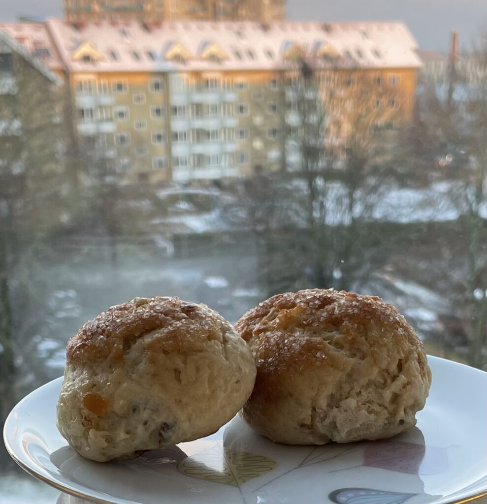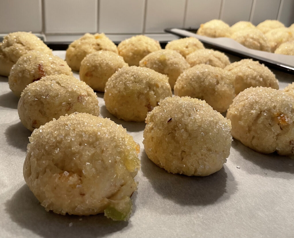 De smager så absolut af jul med de søde stykker sukat og de skarpt syrlige pomeranser, som spreder smag og glæde i din mund og hele dit væsen. Måske. Ellers kan man sagtens bage julebollerne uden alt det frugt, eller man kan nøjes med rosinerne, eller man kan køre chokoladebidder i stedet. Det er helt op til dig.