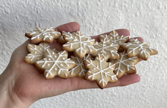 I mellemtiden kan du fylde alle dine appelsiner med hele nelliker, så dit hjem dufter af julestue, eller du kan klippe snefnug eller måske bare sidde med din te eller kaffe og kigge ud på den grå himmel og tænke på, hvor heldig du er, at du lige kan trække vejret og få en pause – og har vaniljekranse til aftenkaffen senere.