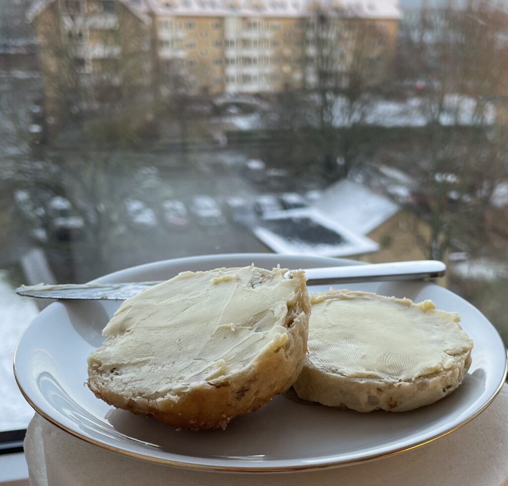 Bollerne sættes alle sammen på en plade, du har beklædt med papir, og så hæver de en halv til en hel time, før de pensles forsigtigt med sødmælk eller æg (igen ikke iskoldt fra køleskabet, så får dine små, fine boller jo en forskrækkelse), og så bager du dem midt i ovnen ved 200 grader i 13-15 minutter. Igen – ovne er forskellige, boller er forskellige, og præferencer er især forskellige, så hold øje med bollerne, og tag dem ud, når de er smukke og farvet som guld, du gerne vil sætte tænderne i. Du kan evt. vende bunden i vejret på en prøvebolle og lige smølfesparke (hvad hedder det overhovedet? Flicking?) på bunden, som skal være hård og sprød i det og være mørk (men ikke sort!).